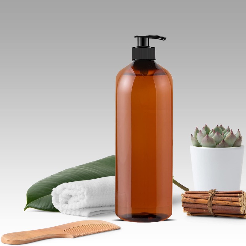 YBCPACK 2 Pack 1000ml Plastic Soap Dispenser Bottle with Pump, Refillable Amber Shampoo Dispenser bottle with Pump, 32oz Empty Pump Bottles for Shower gel, Body Wash, Shampoo, Massage Lotion