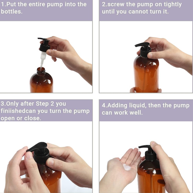 - Locking lotion pump can be adjustable for on or off, which reduces leaks and spills. Ideal refillable pump dispenser bottles for DIY homemade shampoo, body lotion, conditioner, body wash, shower gel, etc.