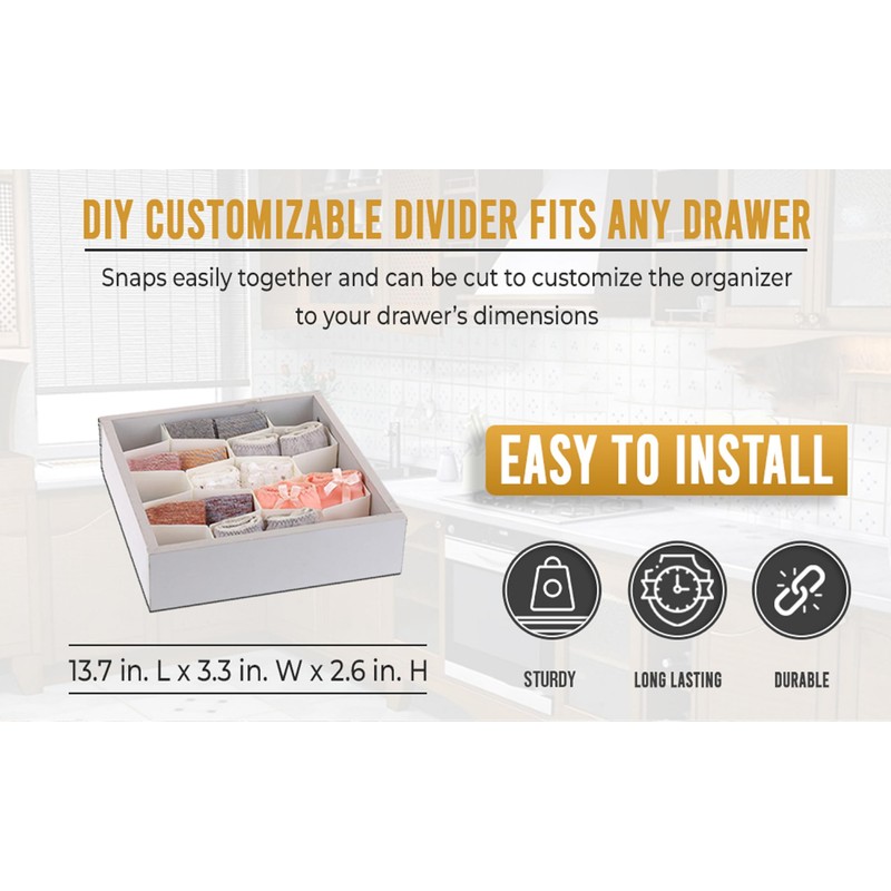 • CUSTOMIZABLE FOR SNUG FIT - Not all drawers dimensions are sized equally. The separator can be easily cut to customize the organizers to your drawer’s dimensions with a clever modular system