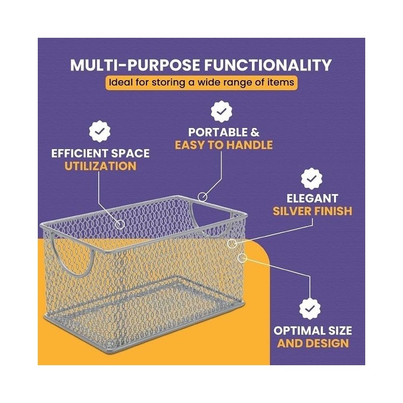 YBM HOME Mesh Storage Box, Silver Mesh Great for School Home or Office Supplies, Books , Computer Discs and More (6, 7.75 x 4.3 x 4.3)