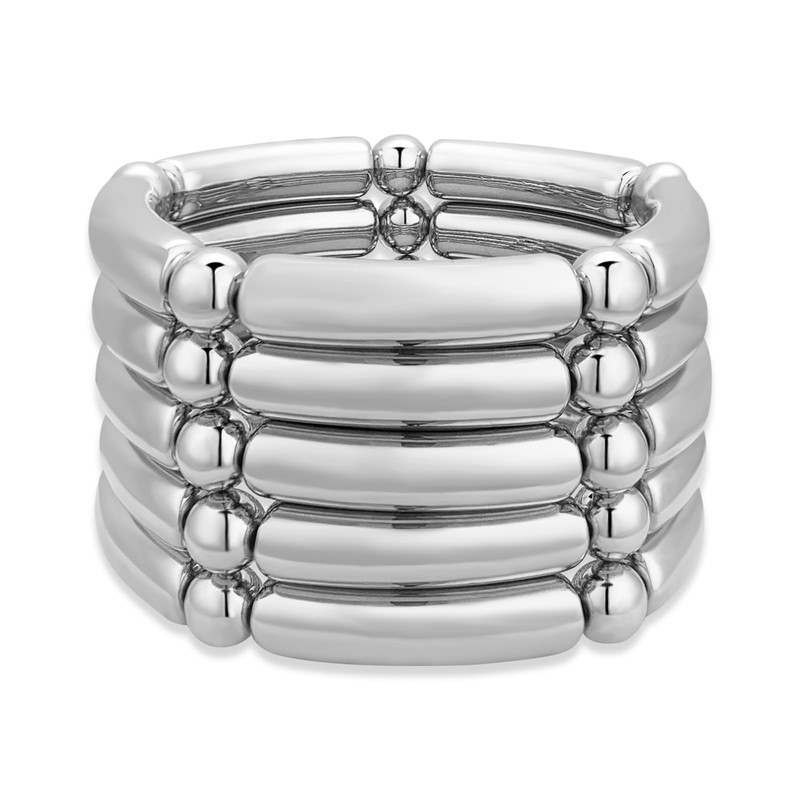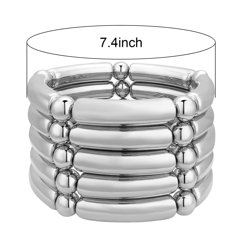 YBMYCM 5PCS Gold Chunky Bangles Bracelets for Women Gold Plated Stackable Layered Curved Bamboo Tube Stretch Bracelets Bangle Gift Jewelry (5pcs Silver-8mm)