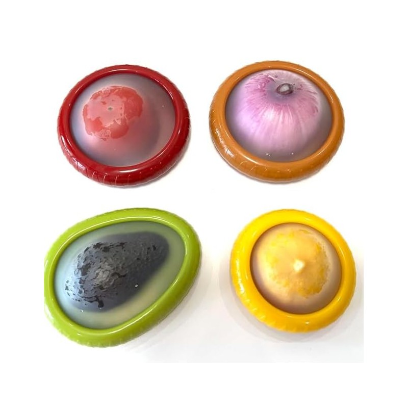 - MATERIAL: Silicone Fruit Keepers feature a revolutionary design of soft, highly elastic food-grade silicone film combined with ABS to form a perfect eco-friendly seal that prevents oxidation and keeps food fresher for longer.