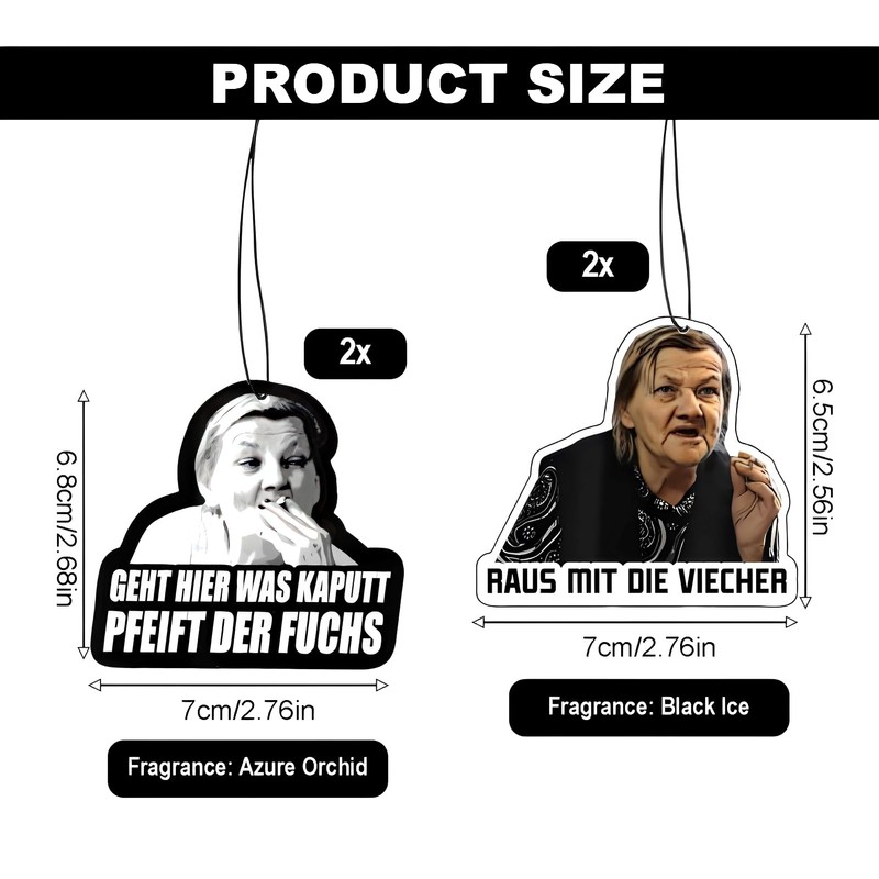 - Unterhaltungsdesign Unsere Parfmanh?nger sind als Auto-Erfrischer und Innenraumdekoration einzigartige Highlights, sorgen fr eine humorvolle Atmosph?re w?hrend der Fahrt und schaffen eine entspannte Atmosph?re.