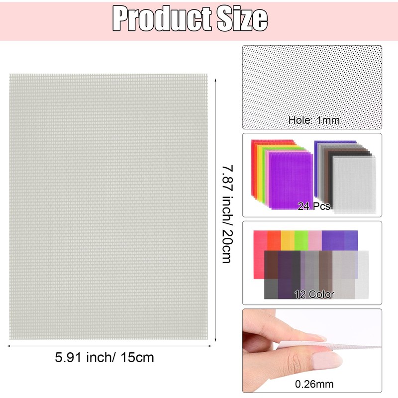 - Great value package: 24 pieces eye mesh in 12 colours, 2 pieces of each colour, dimensions 20 x 15 cm (7.87 x 5.91 inches), pore size of 1.0 mm and a thickness of 0.2 mm. A sufficient amount of plastic mesh fabric can be used to make different crafts that meet your different requirements. And the rich colour selection makes you the most eye-catching person in the crowd