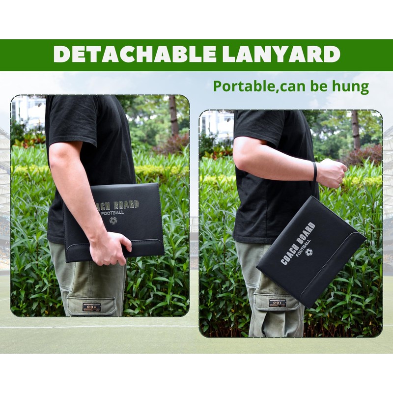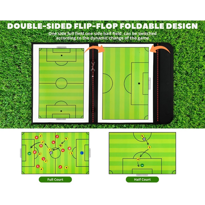 - Foldable coaching board design allows easy portability and storage turning this clipboard for coaches into a compact tool ideal for training sessions and matches