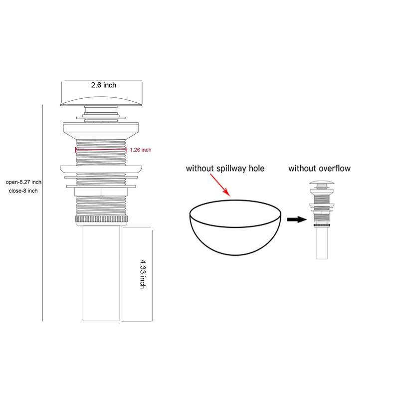 - EASY TO OPERATE: Spring loaded push button does not require a lift rod. Simply push the drain cap down to close and to seal, push again to open and to drain water. You can turn the upper cap counter-clockwise to unscrew and remove