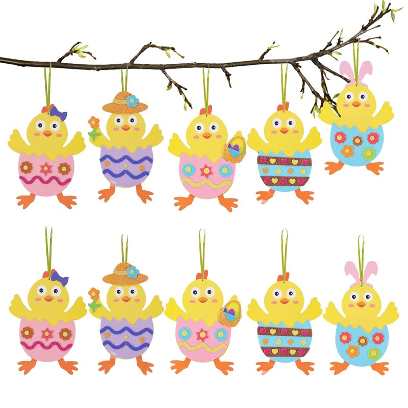 Ycfish 10 Pcs Easter Chicks Crafts Kits, Easter Eggs Craft Kit, Easter Egg Decorations for Girls Boys DIY Make Your Own Mix and Match Ornaments Gift