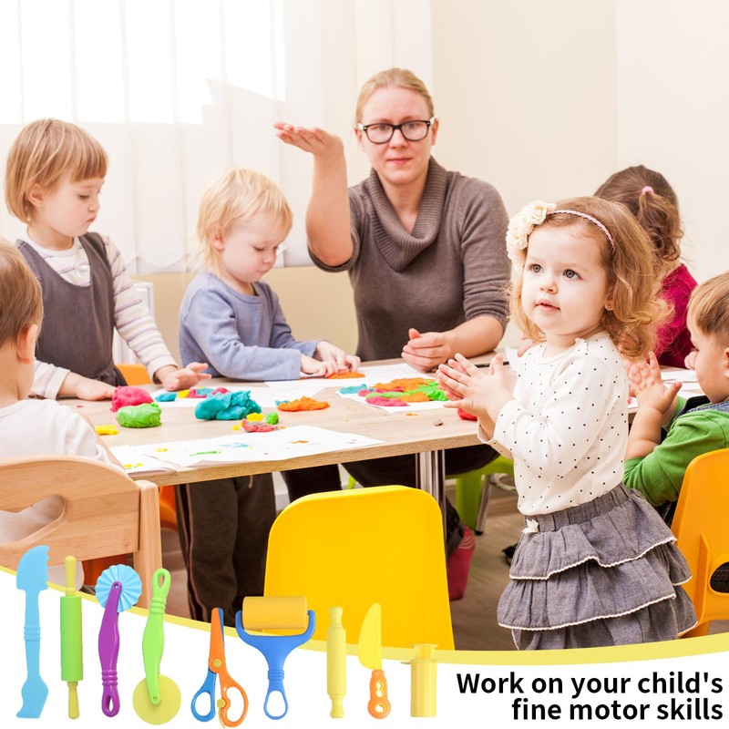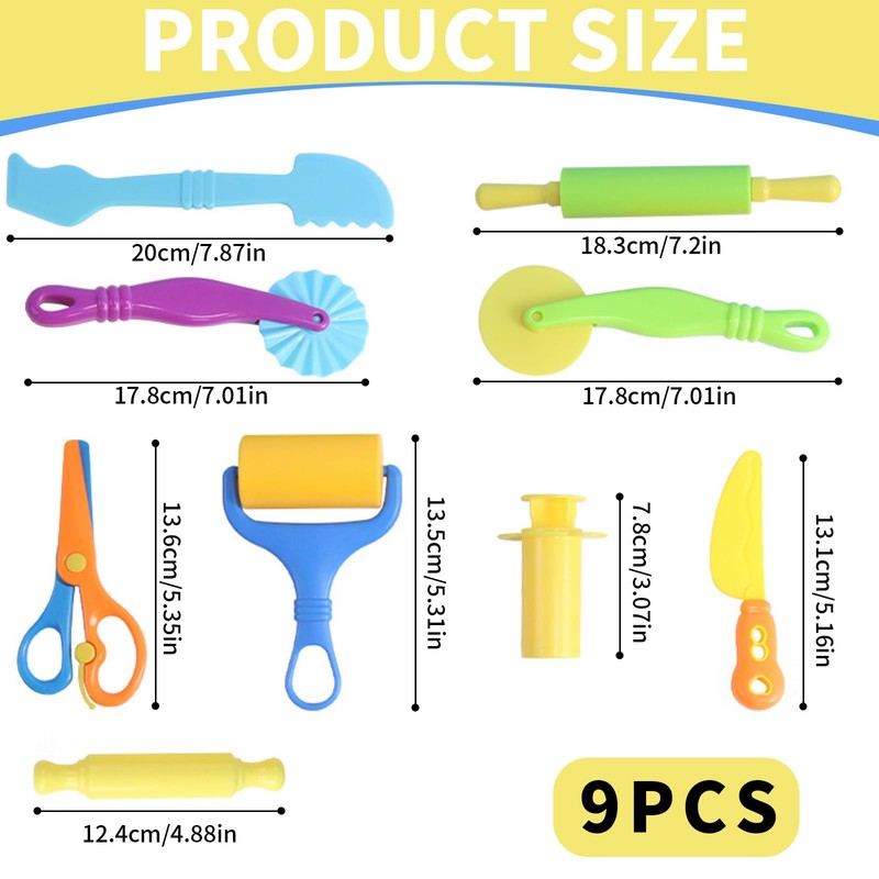 - Das knetset hat 9 verschiedene werkzeuge und ist farbenfroh, was die kreativität der kinder anregt und die hand augen koordination trainiert