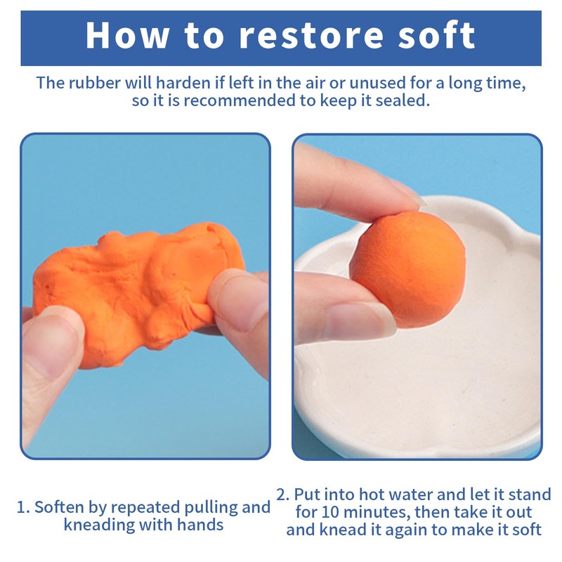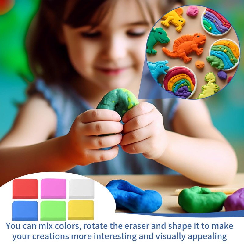 - Bright and colourful: the eraser clay is available in six bright and colourful colours, so that children can mix the colours to create more vibrant and unique eraser shapes, making them ideal for drawing and other crafts