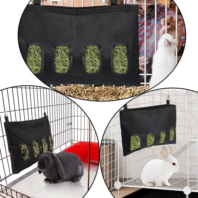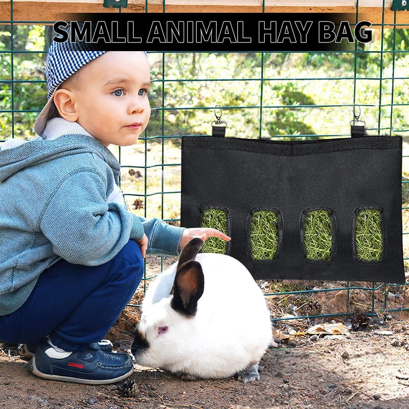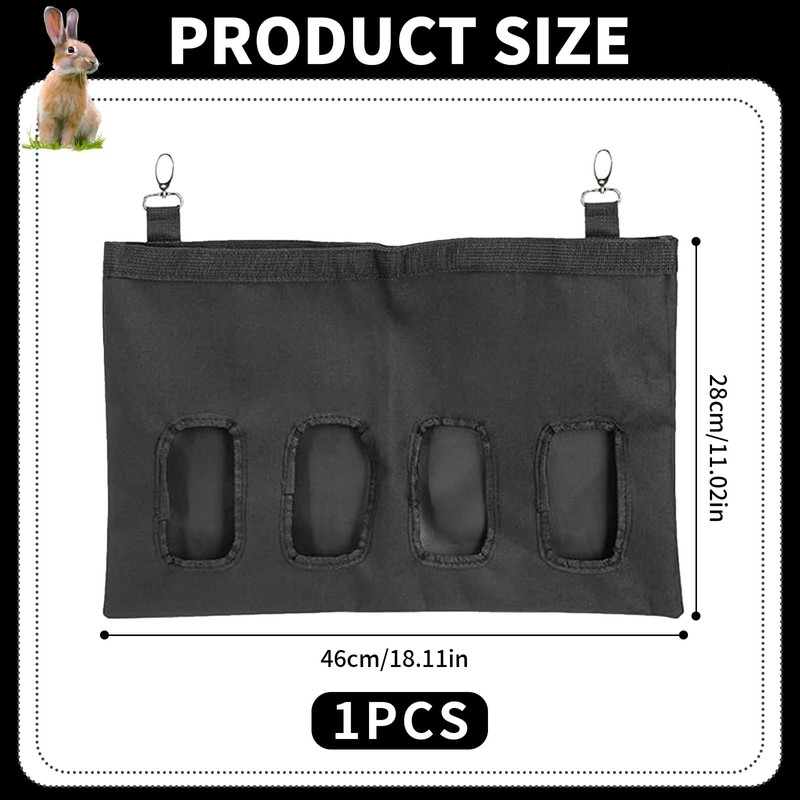 YCHYAN Rabbit Hay Bag, Oxford Fabric Rabbit Hay Feeder Bag, Adjustable Hanging Hay Food Bag, with 4 Windows, Suitable for Guinea Pigs, Rabbits and Other Small Animals