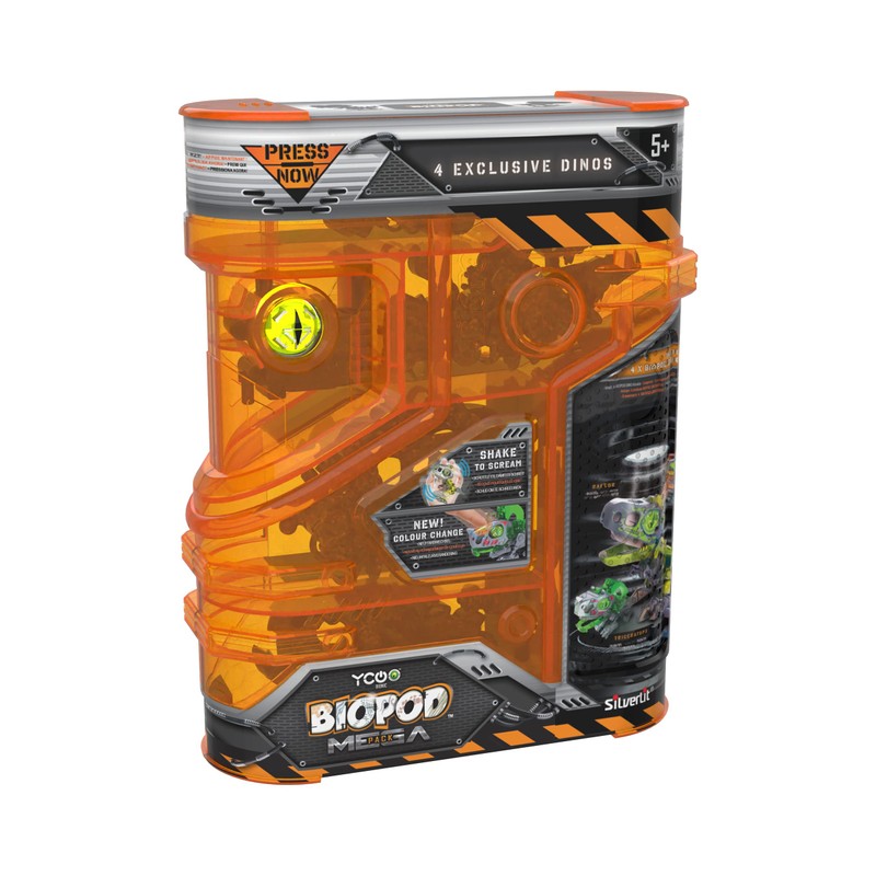 - BIOPOD MEGA PACK- Discover a creature from another world. In the packaging are 4 exclusive transparent primeval creatures available. Don't worry, the dinosaurs are not alive, although the gaming experience is realistic thanks to LED lights, sound effects and jaw movements. A great gift for children on any occasion, whether for a birthday, Christmas or Easter.
