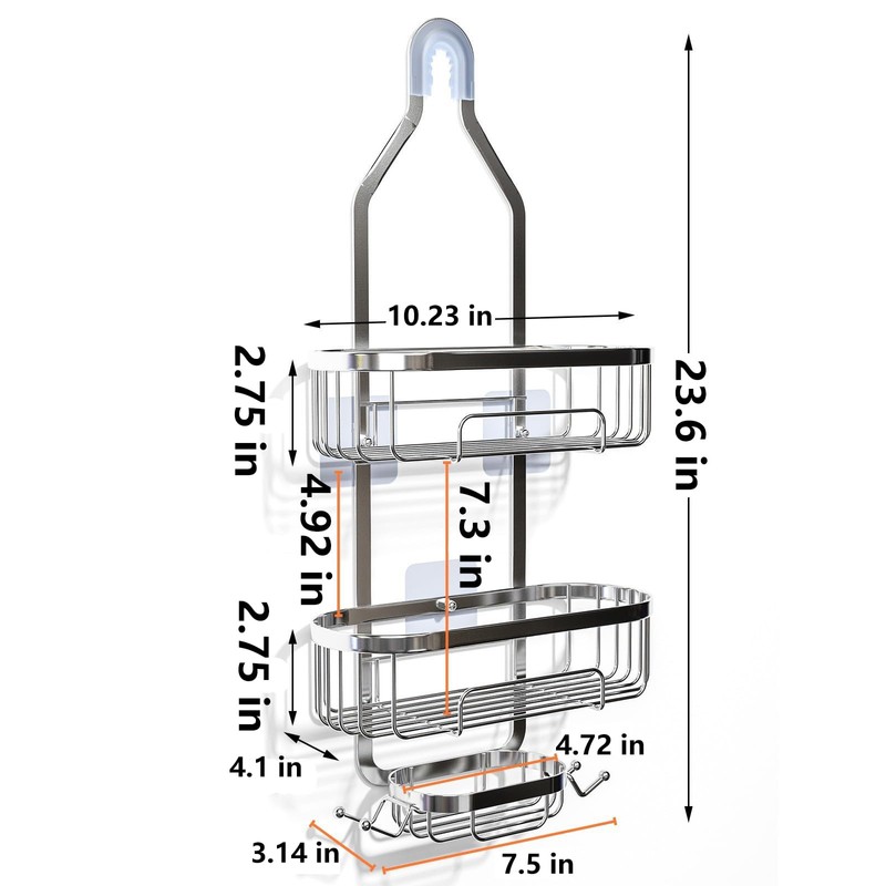 - FITS MOST SHOWERHEAD:This hanging shower caddy fit most sized shower heads. Hanging this bathroom organizers over your shower head, you can enjoy your bathing moments better, which is designed to provide you with a more comfortable bathing experience. It is aesthetic and suitable for home toilet restroom washroom bathroom, rental apartment, small rv bath booth and college dorm.
