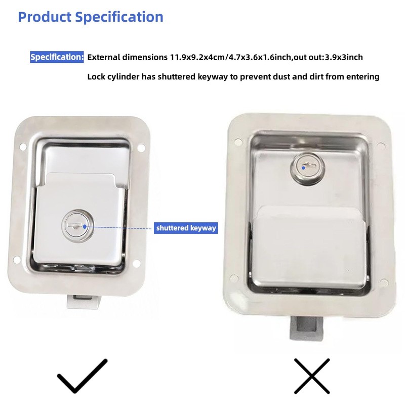 - Specification: External dimensions 11.9x9.2x4cm/4.7x3.6x1.6inch,out out:3.9x3inch,Lock cylinder has shuttered keyway to prevent dust and dirt from entering