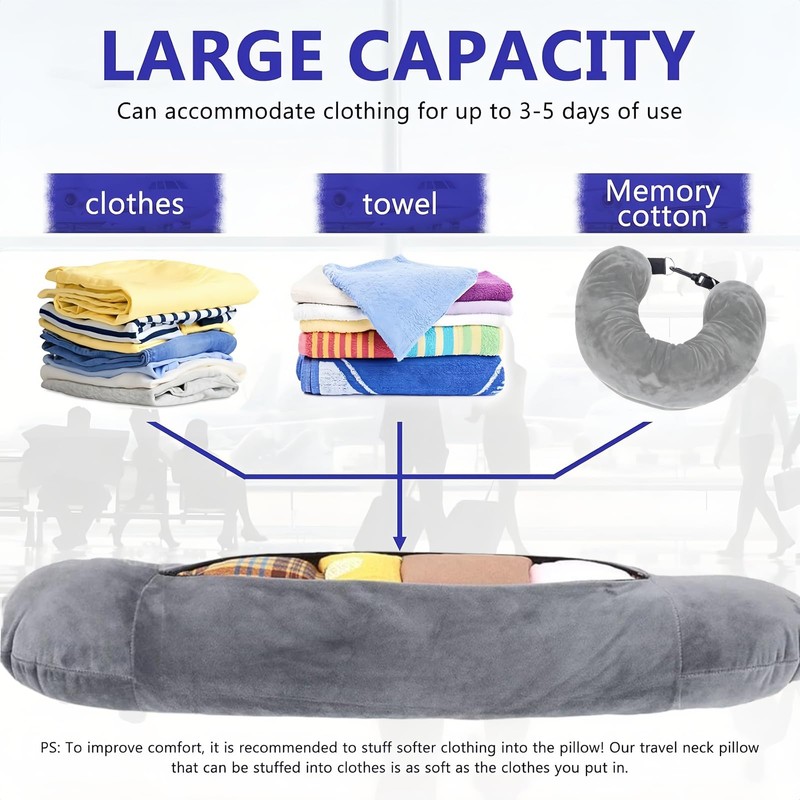 - 【Easy to Use & Maintain】: Simply unzip the travel neck pillow to add/remove filling (not included) to your preferred firmness. The removable cover is machine washable. Compact design fits in carry-ons when partially emptied.