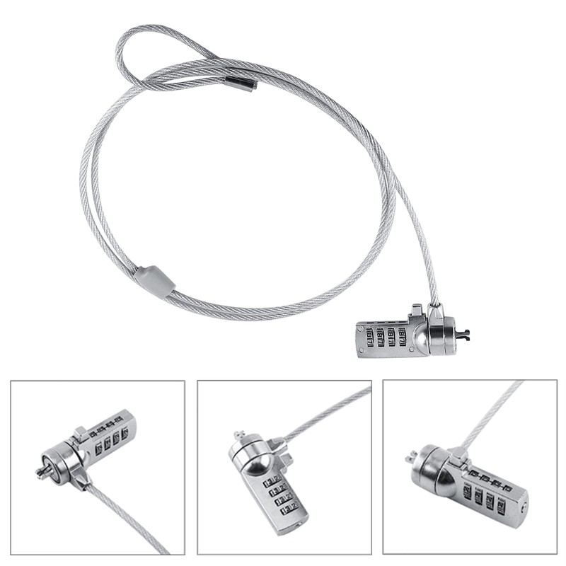 This is a laptop combination security lock cable with four digit password. Convenient and stable material, which is a anti-theft cable for you. It works with all notebooks, desktops, docking stations with built in standard security locking slot hole.