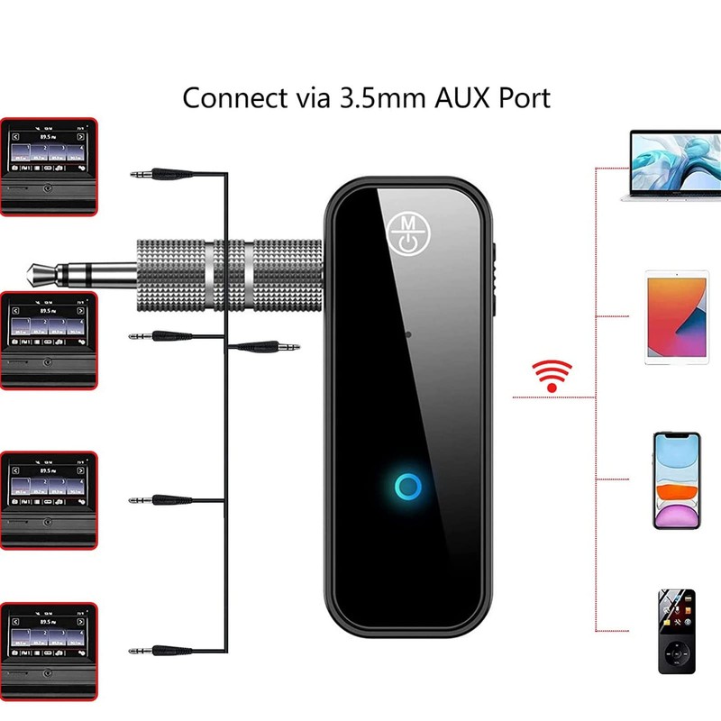 - Receiver: The receiver can be easily connected to a car or home stereo system, speakers and wired headphones via the 3.5 mm jack. You can play your favourite songs on the car stereo system.