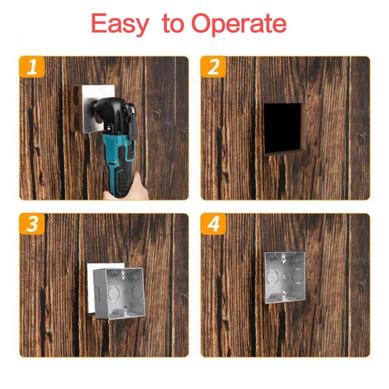 - Hole cutting: Cut 2-3/8" x 3-3/4" or 3-3/4" x 3-3/4" holes on drywall for installing outlets and electrical boxes.