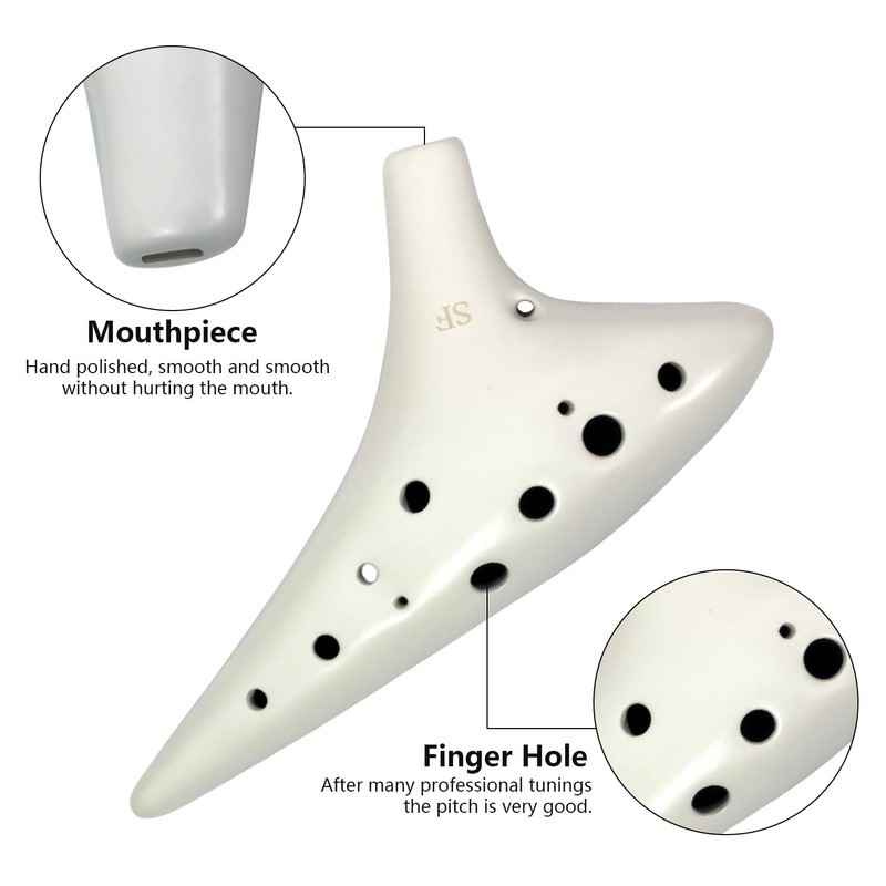 YCXYQ Soprano F key White - Ocarina Professional Master Tuning 12-Hole Ceramic Piccolo White Appearance is More Beautiful Comes with Fingering Chart Neck Lanyard and Storage Box