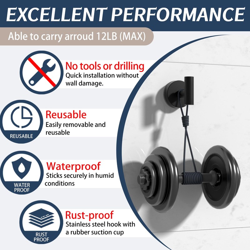 - Reusable and Easy to Clean: Built to last,these hooks are waterproof and rust-proof,can be reused multiple times.If suction weakens due to dust or moisture,simply rinse the suction cup under water,allow it to dry,and reapply to restore its holding power