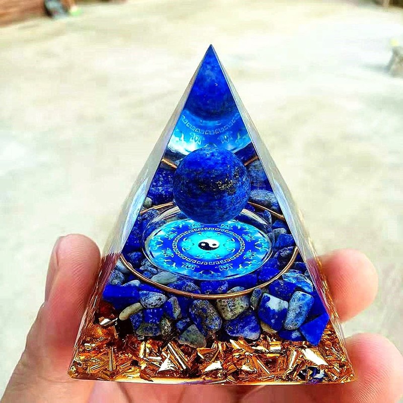 ycyingcheng Moonstone Crystal Orgone Pyramid, Lapis Lazuli Ball Tai Chi, Ogan Crystal Energy Tower, Nature Reiki Chakra Crushed Stone Jewelry, Crystal Pyramid, 6CM
