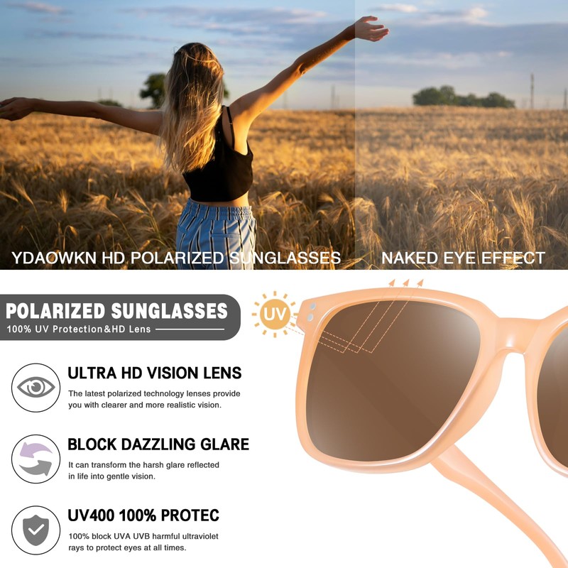 - 😎HD Polarized Lens ▶ To prevent your eyes from being damaged by ultraviolet rays, these YDAOWKN polarized sunglasses have high-quality lenses with UV400 protection. You can always bathe in the sun. This sunglasses will eliminate the damage caused to your glasses by UVA, UVB and glare. Make your vision clearer and softer.