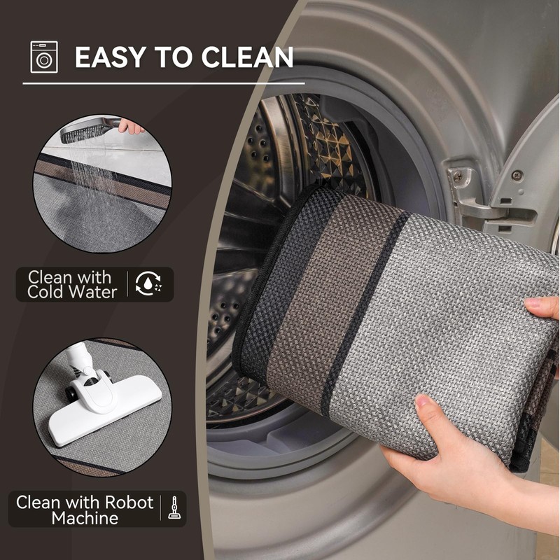 - MACHINE WASHABLE BATH MAT: Bathroom rugs half round 20x32 use hairless suede fabric surface, quickly absorb water, dirt and hair will not stay on the surface, you can just wash bathroom rugs with shower nozzle or wet cloth then air dry or simply throw the thin non slip bathroom rugs in the washing machine for a quick wash & it will be as good as new. Easy to clean & guaranteed quality, even after repeated cycles in the washing machine, the bathroom rugs will maintain its flat shape & integrity. We are committed to providing a satisfying experience. If you have any questions, please feel free to contact us.