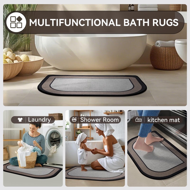 - SUPER NON-SLIP BATHROOM RUGS: Step on your half round bath mat with confidence, this non-slip bathroom rugs features a premium rubberized non-slip backing that grips any floor securely, keeps bath rugs half round in place and are non-slip even on wet floors. The waterproof backing prevents water from seeping in & keeps your floor dry. Say goodbye to slippery accidents! The carefully crafted non slip bathtub bath mat offers great stability for worry-free bathing.