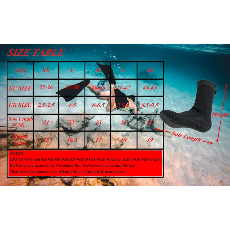 - COMFORTABLE FIT: The soft and stretch 3MM neoprene materials of our diving socks can give you flexibility and a comfortable fit, which you have less restrictions and less feet fatigue during diving. Velcro strap design for a snug fit and all seams of our diving socks were glued and blind stitched, which ensure minimal water entry and keep the socks stay in place tightly. NOTES: If you are a slim woman with small feet, we recommend you to choose the size S or XS!