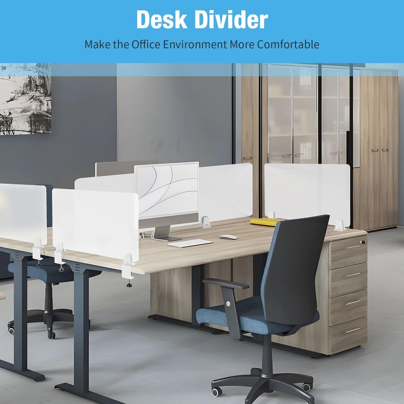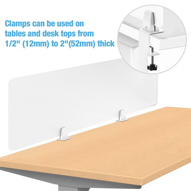 - Desk Divider Set-Product Size: 47.2'L x 15.8'WAmount: Pack of 4 PcsQuantity of Universal Clamps: 8Material: Acrylic Colorl: FrostedOur 4 sets of desk divider privacy panels can easily separate open work or study areas, allowing you to enjoy private space and prevent interference while also being with colleagues and classmates.