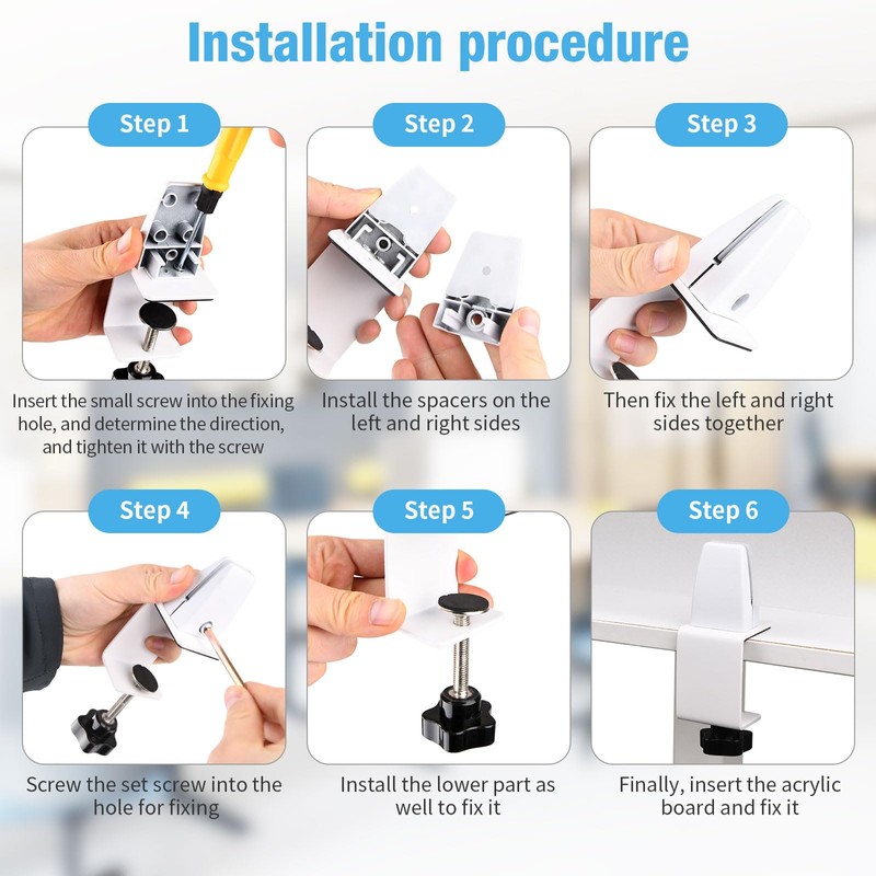 - High Quality Material-Our acrylic desktop partitions are made of high-quality frosted acrylic, and the Clamps are made of high-strength alloy steel. They are beautiful and coordinated, and can perfectly blend with your office and learning environment. They are sturdy, durable, and easy to clean.Perfect packaging prevents the product from scratching the surface during shipping.