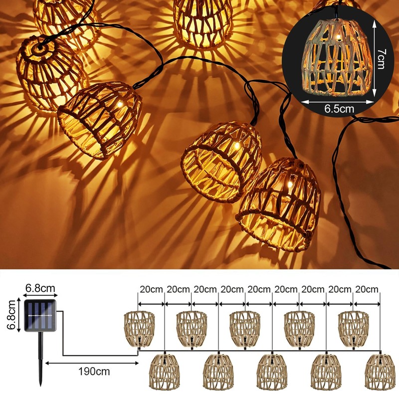 YeahBoom Led Solar Lichterkette Aussen,Led Solar Rattankugel Lampion,Solar Lichterkette Aussen,Lichterkette Außen Solar,Solarleuchten Balkon Garten Outdoor für Außen Garten Solarleuchten