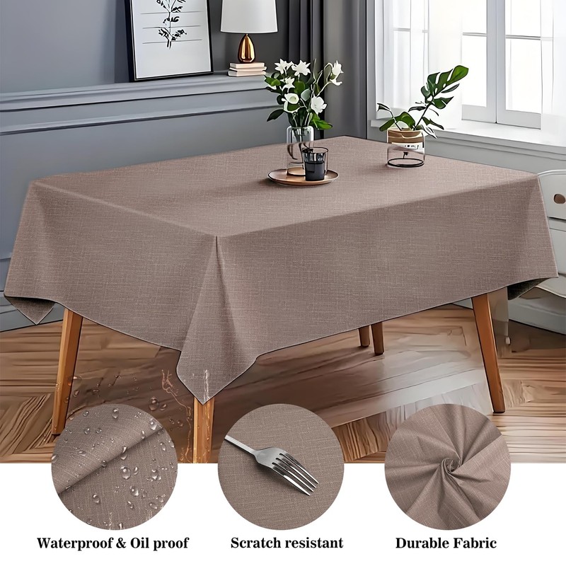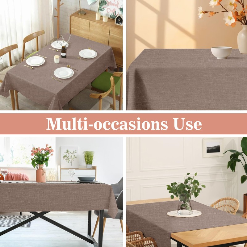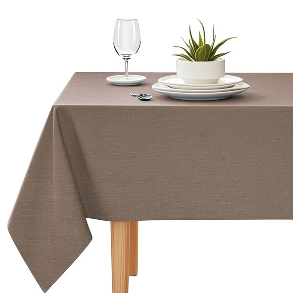 YEAHSEA Rectangle PVC Table Cloth 200x140cm,Waterproof Table Cover Protector Wipe Clean Table Cover for Kitchen Party Outdoor Indoor,Coffee