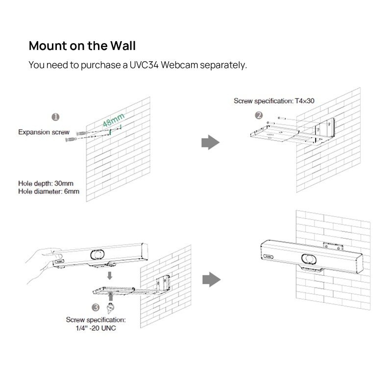 - Yealink BRK-VC118 Mounting Bracket compatible with Yealink UVC34 4K Conference Camera.