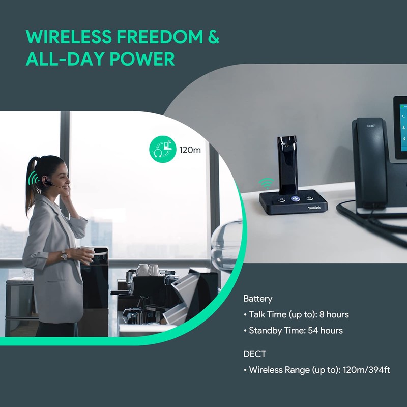 - Long Wireless Range: Enjoy wireless freedom to take calls while moving within a 120m radius of your desk. Ideal for office workers and employees with landlines phone who need a solution to remote workplace issues.