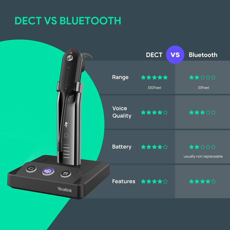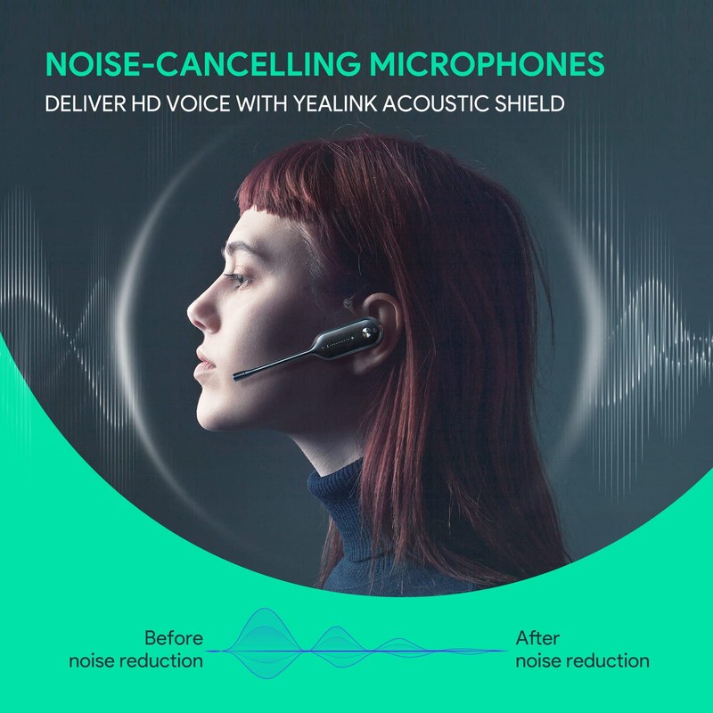 - Superior Audio Quality: With Yealink's Acoustic Shield technology, the wireless teams headset built-in two microphones automatically block the background noise,ensure the participant's voice is heard clearly, greatly increasing communication efficiency.