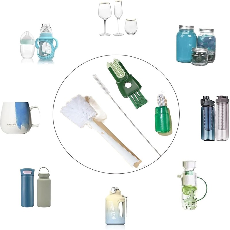 - 【Diseño multifuncional 5 en 1】Este cepillo puede ser desmontado en cinco cepillos especializados, incluyendo un cepde de copa interior, un cepde de paja, un cepde en forma de u, un cepde de hendidura, y un cepde de cerda rígida.Cada cepillo está diseñado para áreas específicas, abordando diferentes retos de limpieza.Ya se trate del interior de una taza, la paja, bordes del borde, o manchas persistentes, este conjunto asegura una limpieza a fondo