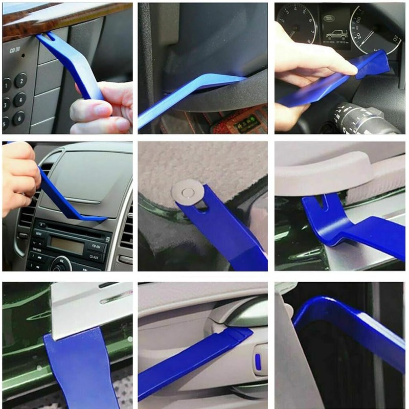 • 【Amplia aplicación】El kit de herramientas de extracción de molduras es ampliamente utilizado para paneles de molduras, molduras de puertas, paneles de instrumentos, parachoques, guardabarros, molduras, adornos de ventanas y cierres, también es ideal para electrodomésticos y equipos eléctricos.