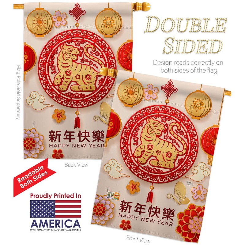 Year Of The Tiger House Flag Eagle Set New Lunar Good Luck Prosperous Seasonal Arrival Blessing Small Decorative Gift Yard Banner Double-Sided Made In USA 28 X 40