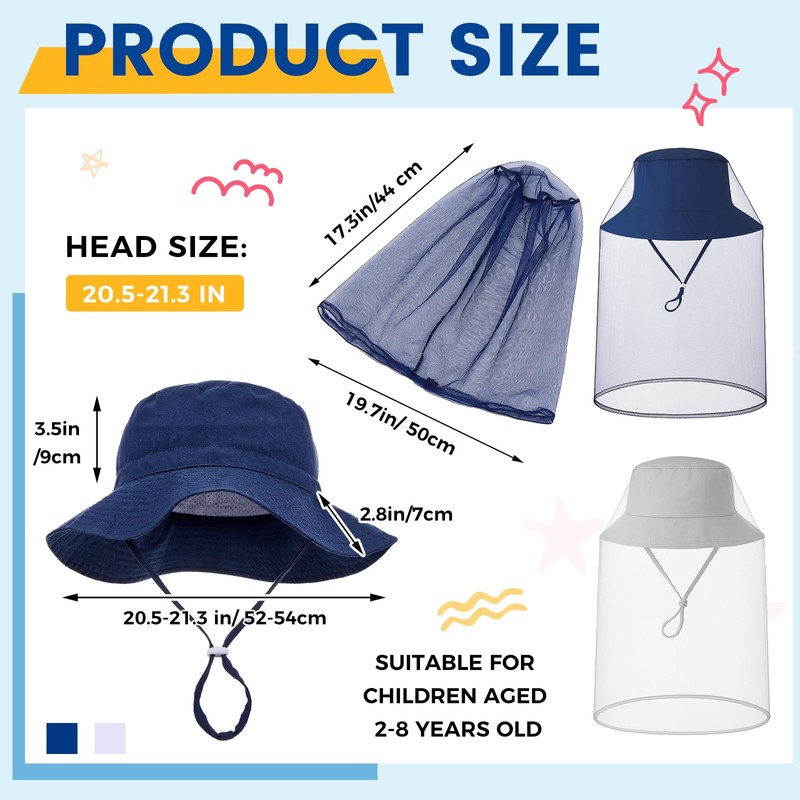 - Package Include: a set of products includes two kids' mosquito net hats, and the net pocket is not attached to the hat; It is separate, and you need to put on the hat first, then put on the net pocket; The kid fishing hat can also be applied for sun protection without the net