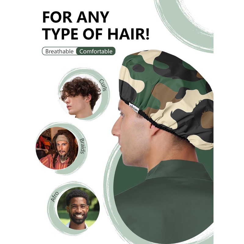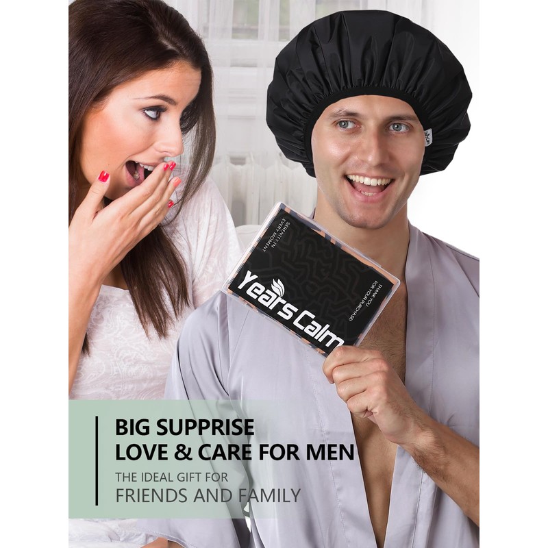 Years calm Shower Cap for Men, Waterproof Reusable Hair Cap with Dual-Layer Design, Reversible Double-Sided Use, Stretchable Elastic Band, Comfortable Fit for Shower, Gym, Hair Care & Travel