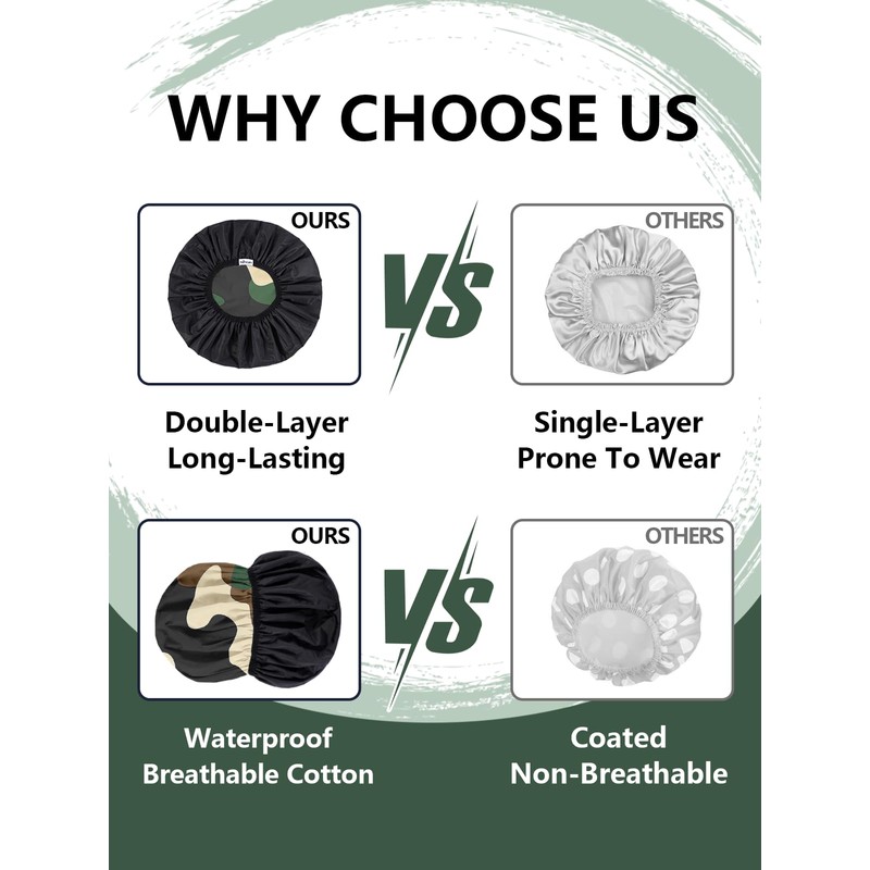- Multifunctional Double Sided Design: The shower caps are double sided, simple on the solid color side and stylish on the patterned side. Each layer can be used independently, you can easily switch between the two looks to match your mood or occasion,enhance you daily life