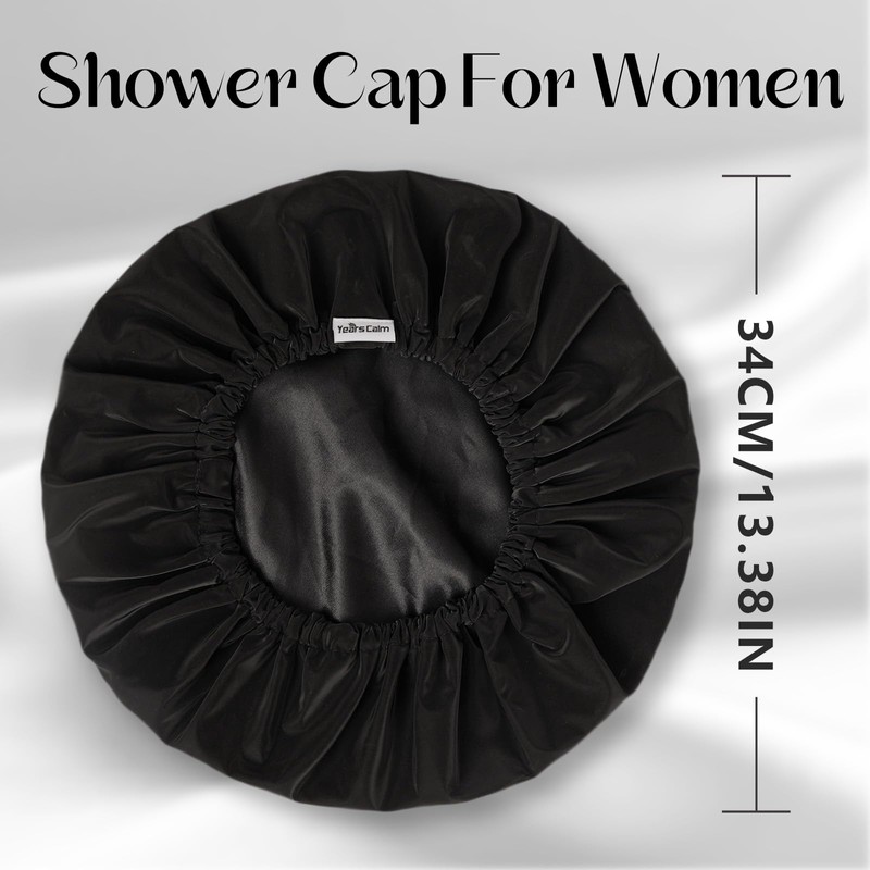 Years calm Shower Cap Reusable Waterproof, Double-Layer Hair Cap, with Elastic Band, Ideal for Shower, Spa, Travel & Cleaning (black, One Size)