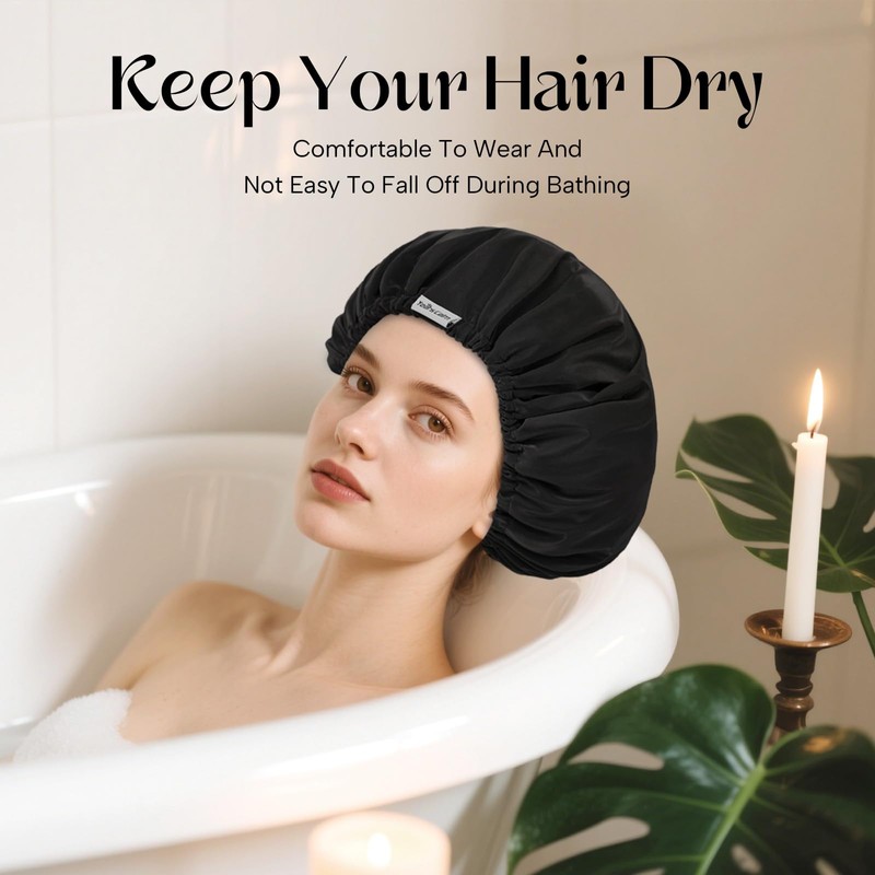 - One Size Fits Most – With a 13.4-inch (34 cm) diameter and a flexible elastic band, this shower cap offers a secure, comfortable fit that stays in place while you shower. Designed to accommodate a variety of hair types and head shapes, including long, thick, or curly hair