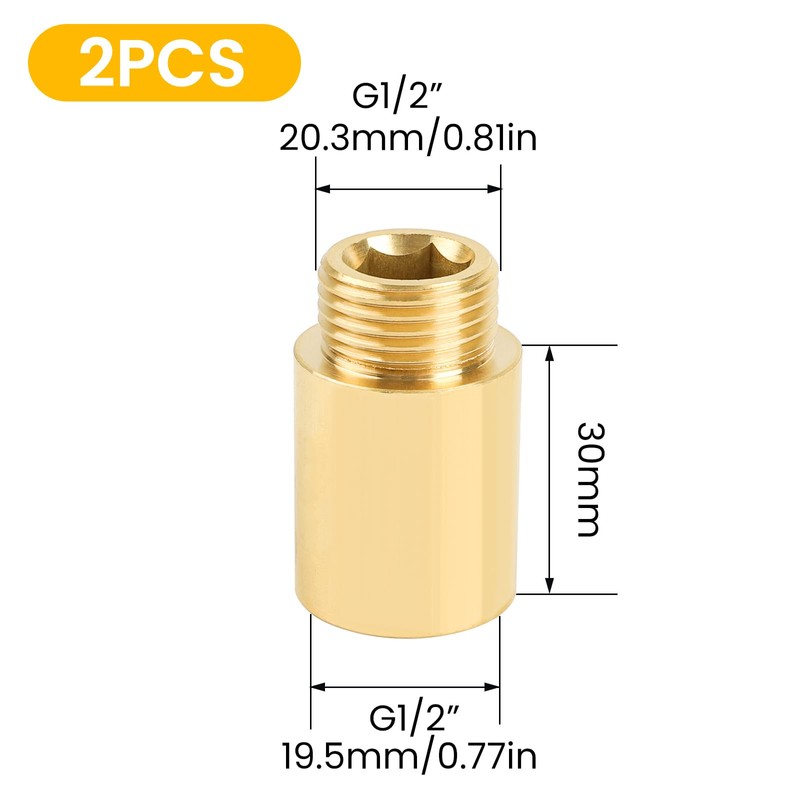 - 【Package Content】You will get 2 faucet extension pipes (internal thread G1/2 inch, male thread: G1/2 inch, length: 30 mm), PTFE sealing tape, instruction manual. Please confirm the shape and size before purchasing.