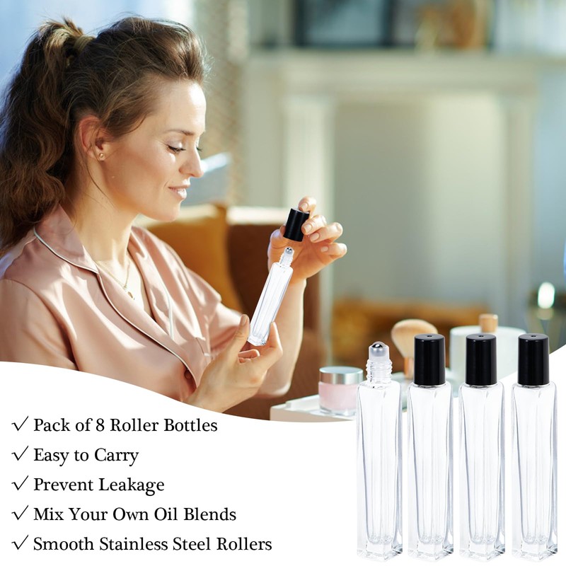 Yebeauty 12 Pack Clear Portable Sample Essential Oil Roller Massage 0.33oz Roller Ball Applicator With Black Lids Small Clear Rollerball Bottle Lip Balms Container for Relaxation