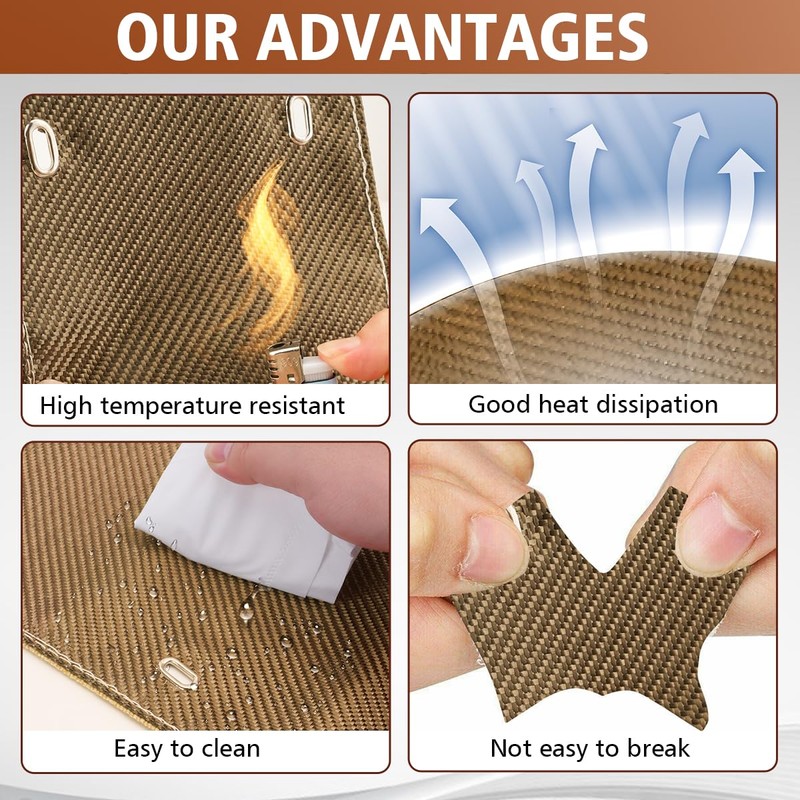 - MATERIAL: Titanium Exhaust Heat Shield is made of two layers of basalt, titanium, and high temperature resistant fabric. It can effectively reduce the temperature of the exhaust pipe and protect the exhaust pipe from moisture and rust.