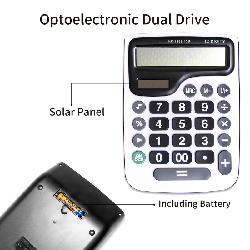 YEBMoo 12 Digit Desktop Calculator with Large LCD Display and Sensitive Button, Dual Solar Power and Battery, Standard Function for Office (YE8898)