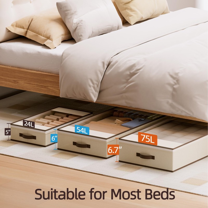 - Customize Your Space: Choose from 24L, 54L, or 75L capacities to fit your specific needs. From bulky blankets to small seasonal accessories, our under bed storage drawers make organizing effortless. Mix and match sizes to create a personalized storage system for every room in your home.