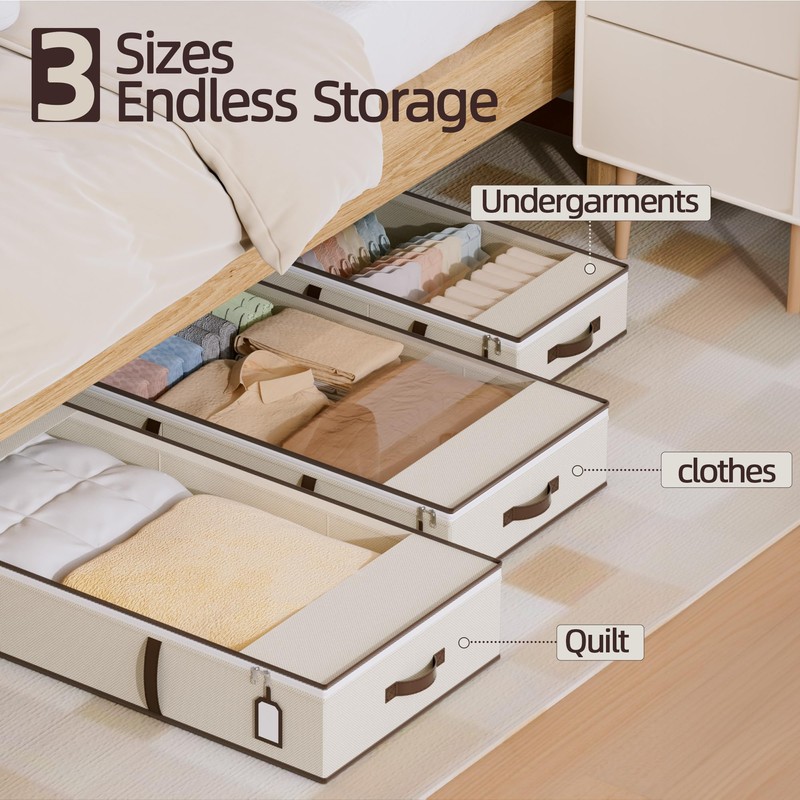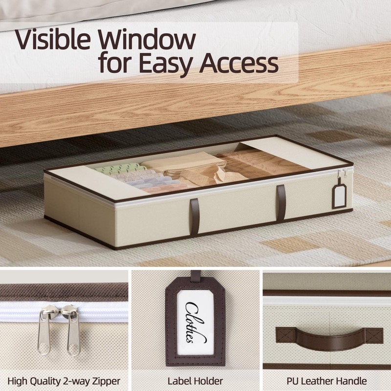 - Clear Visibility, Quick Access: The clear window design saves you time and effort. Quickly identify the contents of each under bed storage bins without unstacking or opening, making storage smarter and more efficient—perfect for busy households.