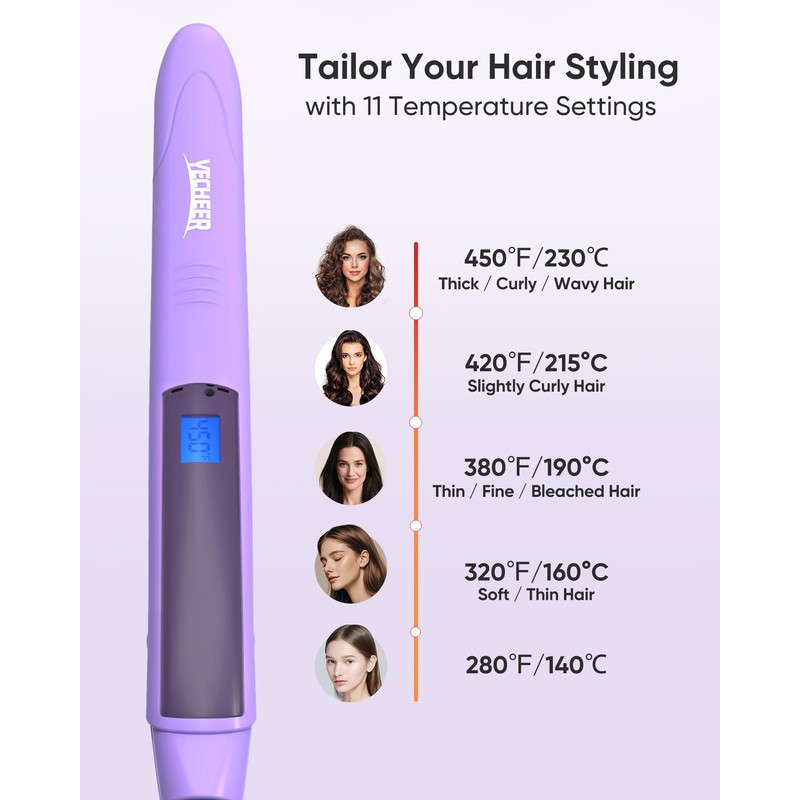 - 2-Year YeCheer Care: We offer a 2-year worry-free period for every YeCheer flat iron user. During this time, you’re fully protected against any product damage or defects. Package Includes: Flat iron, protective glove, user manual, 2*hair clips.